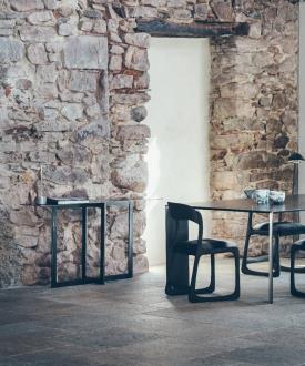 La recherche de la légèreté est ici au cœur du projet. La console CENITZ offre à votre espace une perspective en singulière sur la pièce de vie, reflet de lumière et intrigante géométrie.