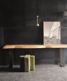 Cette console se décline en différentes dimensions, mariage équilibré entre le bois massif et un piètement en acier aérien, pour investir les espaces privés ou professionnels avec unicité.