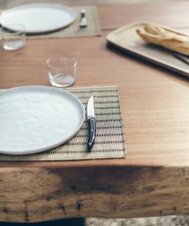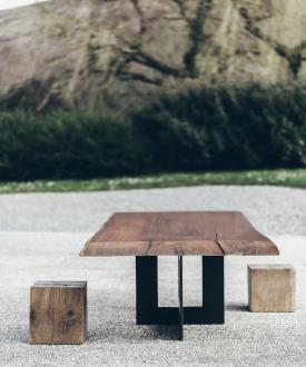La recherche de la légèreté est ici au cœur du projet. Un croisement de feuilles d’acier d’une élégante présence pour sublimer le plateau en bois massif. La table CENITZ offre une perspective en trompe-l'œil.
