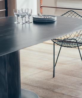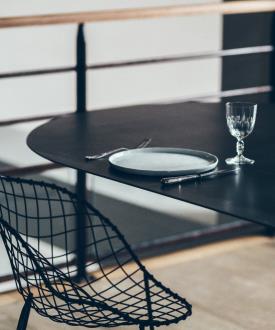 Hodeia signifie nuage en basque. La poésie s’invite avec la douceur de la forme ronde ou ovale. Le pied et la platine accompagnent la ligne sur l'ensemble de la collection. Cette table est d'une pureté rare, une véritable invitation à l'oeil et au sens tactile.