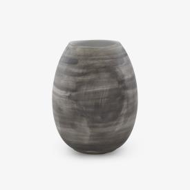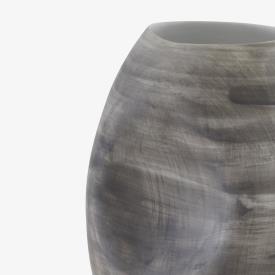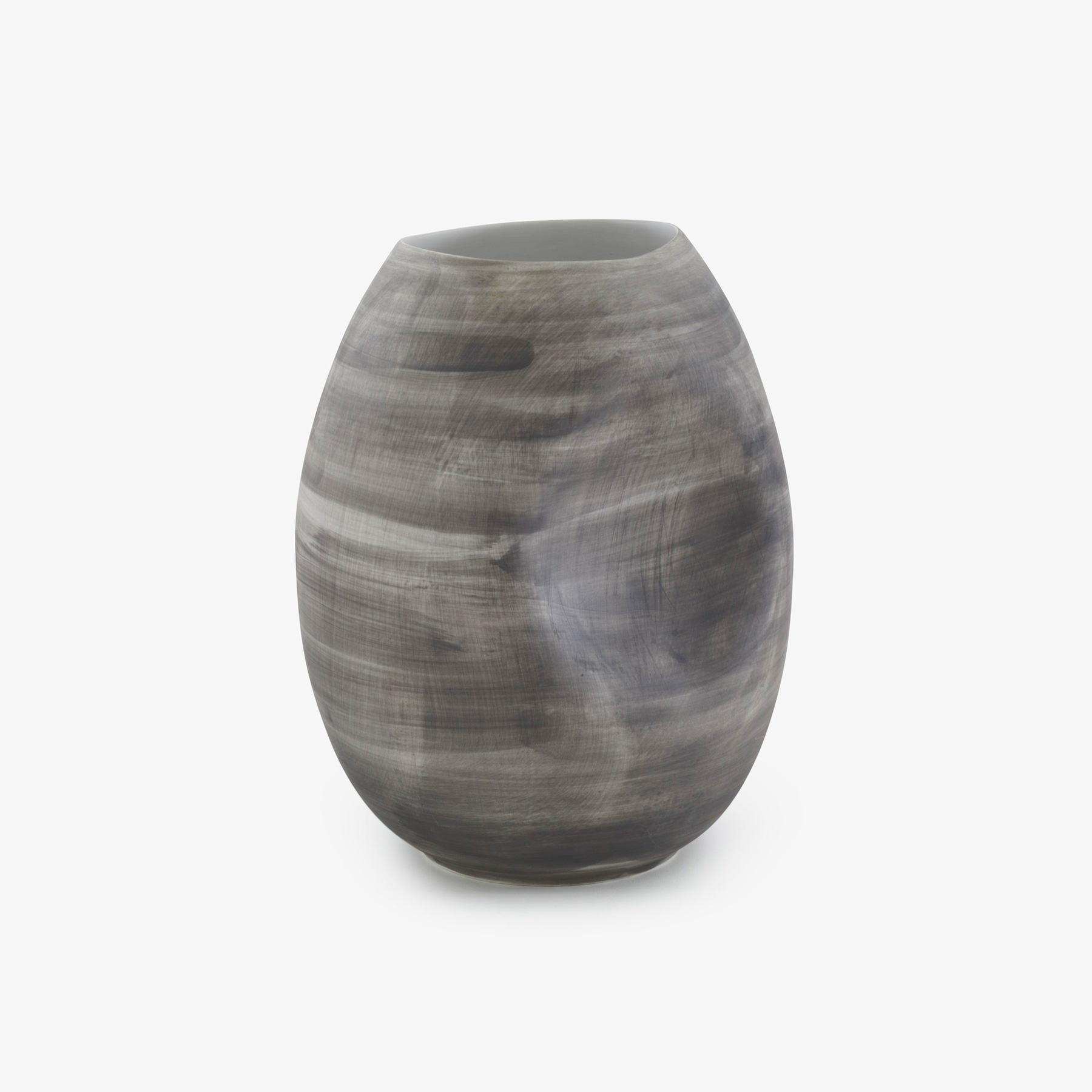 Le vase Pression est un bel exemple de travail tout en simplicité mettant en valeur la matière et la douceur organique du dessin. Biscuit de porcelaine moulé, vitrifié, peint à la main, émaillé gris mat.