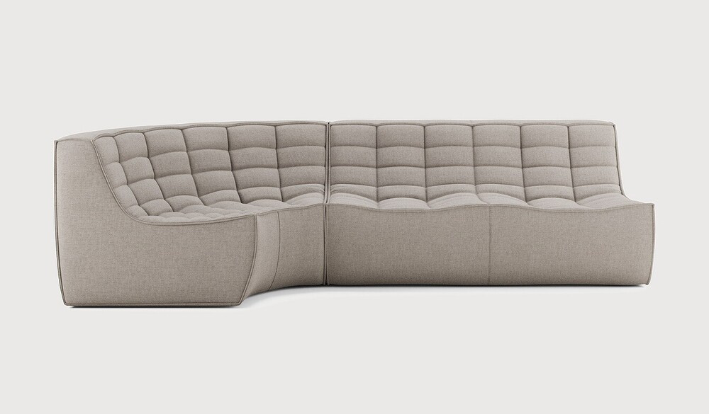 Composition canapé gauche : module 2 places + module d'angle arrondi à 90°. Des connecteurs inclus pour relier les modules du canapé.