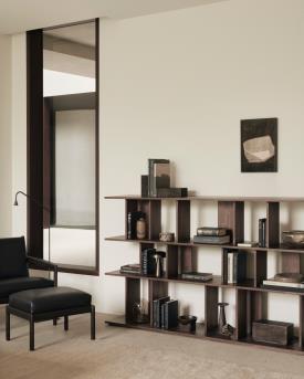 Ethnicraft Design. Alain van Havre - Etagère Irregular Dimensions : l 224 x h 115 x p 37 cm La simplicité du rythme à l'honneur. L'étagère Irregular est une solution de rangement et bien plus encore. Utilisée comme un système d'étagères élégant et pratique contre un mur, ou comme séparateur de pièce astucieux et original, elle peut être placée seule ou en plusieurs exemplaires pour compléter un espace. Fabriqué en Teck massif certifié FSC teinté brun avec finition vernie.