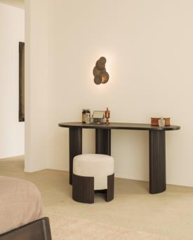 Ethnicraft Design. Jacques Deneef Dimensions : l 45 x h 46 x p 44 cm La collection Roller Max présente un design remarquable qui se distingue par son bel effet cannelé. Le pouf en propose une interprétation multifonction, doté d'un confortable coussin rembourrée intégrée au corps en acajou verni brun foncé. Acajou teinté brun foncé avec finition vernie et mousse haute densité avec habillage en tissu coloris Rice. pouf