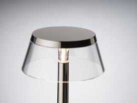 lampe de table sans fil rechargeable fournissant une lumière directe. Corps en matériau moulé par injection et diffuseur transparent en PMMA. Source lumineuse avec technologie Edge Lighting. Autonomie de la batterie de 6/24 heures, rechargeable via USB C et Qi. Capteur optique d'allumage sur la base avec fonction de variation d'intensité à 4 niveaux et contrôle de la température de couleur sur 3 niveaux (2200K, 2700K et 3000K). Câble de charge USB-C inclus dans l'emballage, longueur utile de 120 cm.