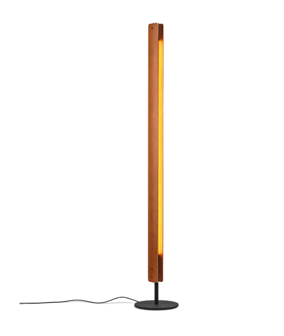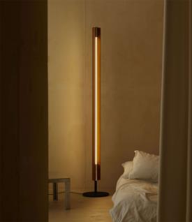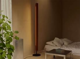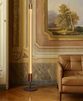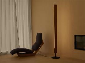 Lampadaire émettant une lumière directe et indirecte avec une distribution symétrique et asymétrique. Composé de deux lames verticales en bois de frêne reliées par des raccords métalliques chromés. Les lames pivotent autour dune source lumineuse tubulaire centrale pour permettre une émission lumineuse variable. Base en fer noir brut séparée des lames verticales. Source lumineuse LED linéaire à intensité variable développée sur mesure. La lampe peut également être équipée de tubes LED T8 standard. Conçu par Tobia Scarpa en 1963 et réédité en 2025, le lampadaire Seki-Han témoigne de sa maîtrise du design et de son expertise dans le travail du bois. La construction complexe s'inspire des techniques navales pour façonner deux lames en bois qui tournent désormais autour de la source lumineuse. Même lorsque les lames sont presque entièrement fermées, un filet de lumière reste visible, créant un effet poétique. Nommé d'après un plat de riz traditionnel japonais servi lors d'occasions spéciales, le lampadaire Seki-Han est une présence vivante où l'immatérialité de la lumière rencontre la qualité tactile du bois.