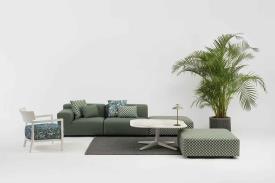 Ces tissus confèrent une nouvelle dimension esthétique et fonctionnelle aux produits, en garantissant un bon niveau de résistance et de durabilité, même dans les environnements extérieurs. Avec deux motifs géométriques et un motif floral, cette collection de meubles d’extérieur offre un mélange unique de style et de confort, pour profiter de l’été avec élégance et sous le signe de la détente. Disponible dans les palettes de couleurs vert sauge, rouille, beige, jaune et bleu.