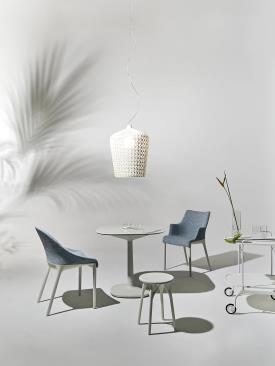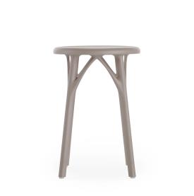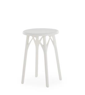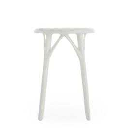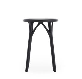 Un tabouret fabriqué avec des matières recyclées qui met l’accent sur la durabilité du projet. L’assise est durable tant du point de vue de la matière que du processus de production, spécifiquement conçu pour une optimisation totale. En effet, trois modèles peuvent être produits à partir d’un même moule, s’inscrivant ainsi dans une démarche verte qui va au coeur de la production industrielle. La valeur ajoutée d’A.I. est d’être la première famille de produits conçue par une intelligence artificielle ayant répondu au savoir-faire de l’entreprise (Kartell) et aux données entrées par le designer (Philippe Starck). Concrètement, la pensée créative, le savoir-faire de l’entreprise et l’intelligence artificielle ont fusionné pour concevoir une produit totalement élaboré par un algorithme qui respecte les paramètres du designer et de l’entreprise. Naturellement, sans faire l’impasse sur l’une des valeurs principales de Kartell : créer un produit industriel, d’une grande qualité esthétique, obtenu par moulage à injection.