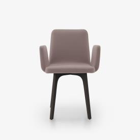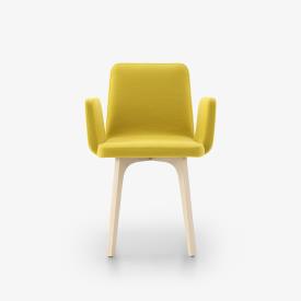 Coque assise-dossier en multiplis de hêtre moulé. Piétement en frêne massif. Patins de protection. Coussins d'assise et de dossier intégrés en mousse polyuréthane haute résilience Bultex (60 kg/m3 - 7,5 kPa et 37 kg/m3 - 2,7 kPa) matelassé ouate de polyester 100 g/m². Pour en garantir la longévité, la périphérie des coussins est renforcée par une garniture en mousse agglomérée haute densité. Accoudoirs garnis de mousse polyuréthane haute résilience Bultex (28 Kg/m3 - 1,6 kPa).